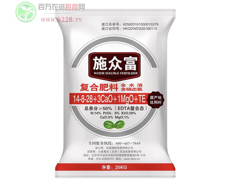 九星惠農(北京)農業發展有限公司,是一家致力于研究植物營養以及作物栽培技術的高新技術企業,公司集產品研發、生產、農業新技術推廣、進出口貿易為一體,順應國家一號文件水肥一體化政策指引,依靠科技求發展,致力于國外綠色環保高效肥料在中國區域的推廣及土壤安全問題的解決,不斷為客戶提供滿意的產品。