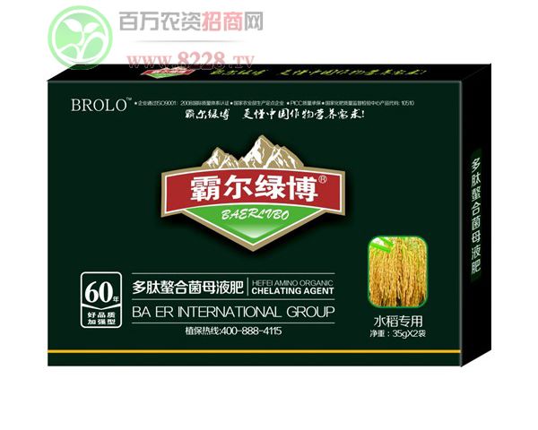 河南綠霸化工有限公司是一家集肥料科研開發、生產、銷售于一體的高科技含量的技術型公司。公司生產的“霸爾綠博”“肥太子”等品牌高端液肥,暢銷國內30多個省市,F擁有*認證的大量元素水溶肥料、中量元素水溶肥料、微量元素水溶肥料、含氨基酸水溶肥料、復合微生物肥料等高端肥料研發、生產資質。