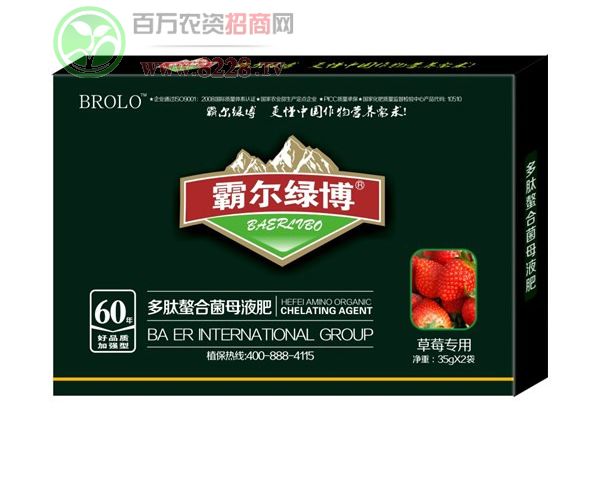河南綠霸化工有限公司是一家集肥料科研開發、生產、銷售于一體的高科技含量的技術型公司。公司生產的“霸爾綠博”“肥太子”等品牌高端液肥,暢銷國內30多個省市。現擁有*認證的大量元素水溶肥料、中量元素水溶肥料、微量元素水溶肥料、含氨基酸水溶肥料、復合微生物肥料等高端肥料研發、生產資質。