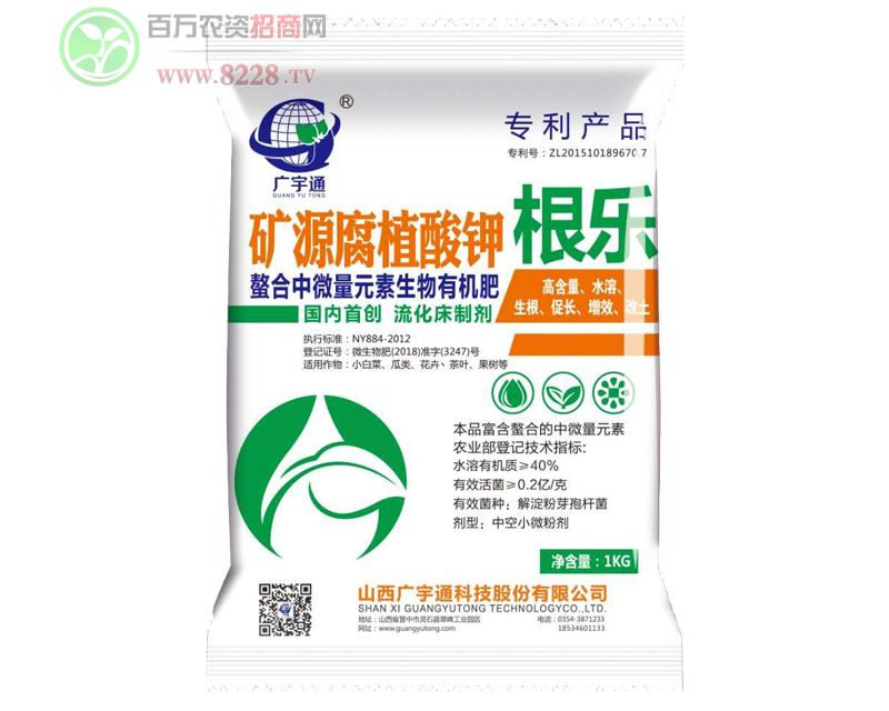 山西廣宇通科技股份有限公司,地處太行呂梁兩大山脈交匯地帶一一靈石,立足優質的高膠質煤炭伴生腐植酸資源,在中國腐植酸協會丶中國腐植酸檢測中心、中科院山西煤化所丶中國熱科院、山西農大,太原理工大等二十余所科研院所的專家教授指導合作下,引進國外腐植酸新型生產工藝,深入研究腐植酸應用及延深制品工藝,目前在職教授六名,碩究生以上學歷研究人員十三名,本科以上學歷員工四十一名。廣宇通科技股份以腐植酸技術工藝丶含腐植酸尿素二銨丶含腐植酸固體液體水溶肥技術工藝研究外輸與礦源腐植酸鈉、腐植酸鉀、黃棕腐植酸鉀、黃棕腐植酸磷、黃腐酸螯合鈣鎂鋅鐵的生產為主。公司下轄農化制品與原料銷售子公司一一只有山西富里酸農業科技有限公司和山西沃盛農業科技有限公司。
